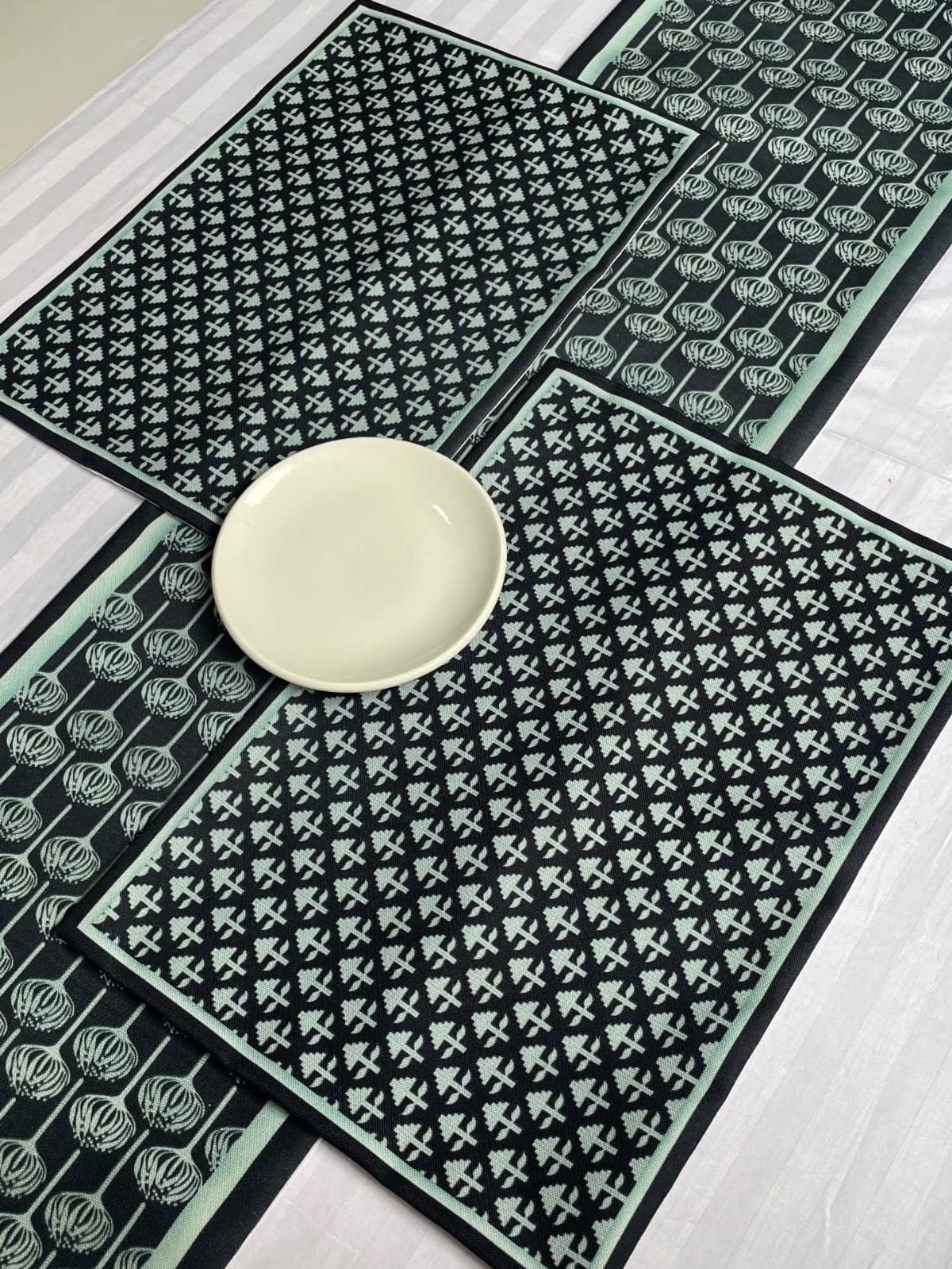 | Size | Table runner, Placemats, Napkins, 1 runner with 4 mats, 1 runner with 6 mats, 1 runner with 8 mats, 1 runner with 12 mats (72 inch runner), 1 runner with 12 mats (108 inch runner) |